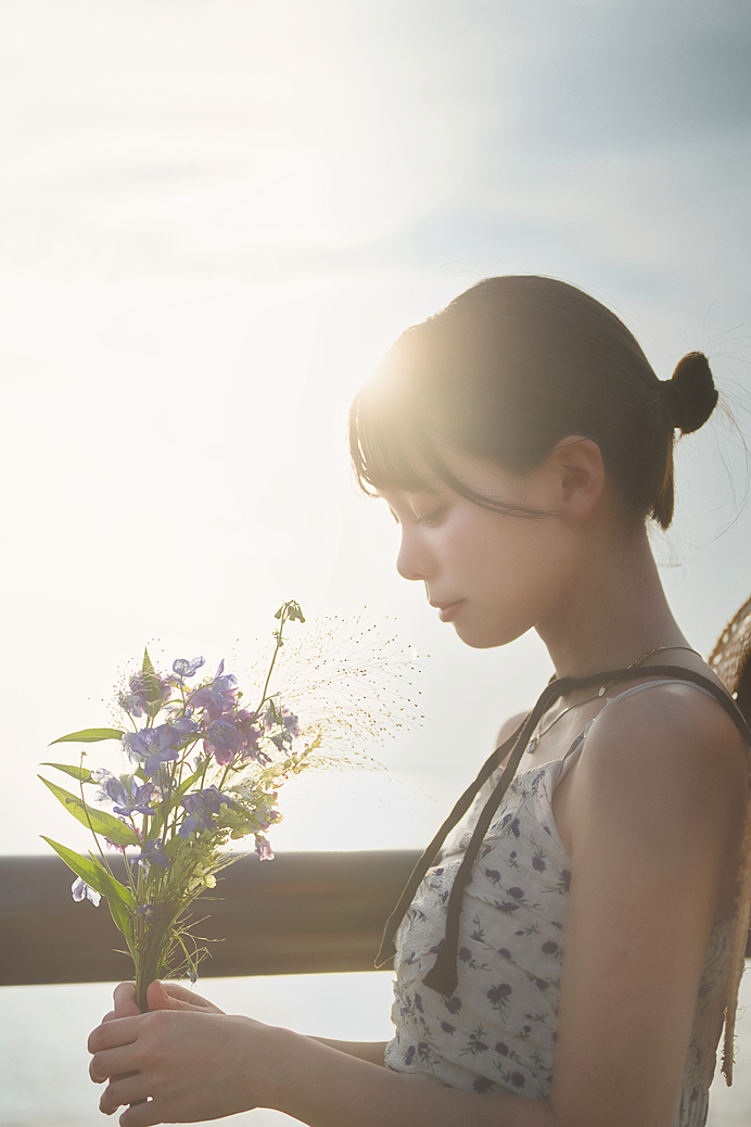 お花を持った撮影で儚い命を表現し、儚さをテーマにした作品。